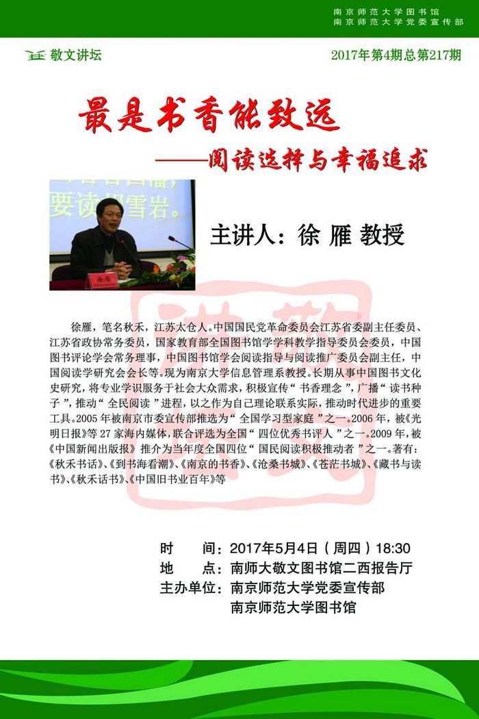 敬文讲坛预告:最是书香能致远——阅读选择与幸福追求